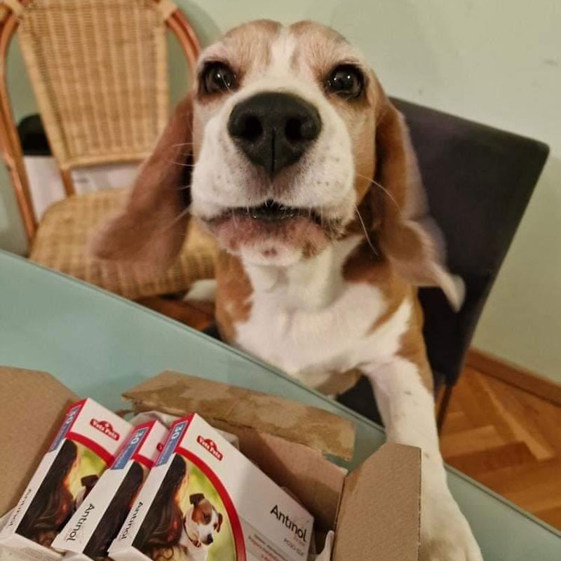 Potem pa smo našli na spletu Antinol tablete, začela sem mu jih redno dajati vsak dan in prvi rezultati so se začeli kazati po dobrem mesecu jemanja. Sedaj se veliko več giba, lažje se vstaja, vrnila se je volja po igranju. Zelo sem vesela, da mu pomagajo in definitivno bom naročila še! Priporočam vsem, ki imajo že starejše kužke.”